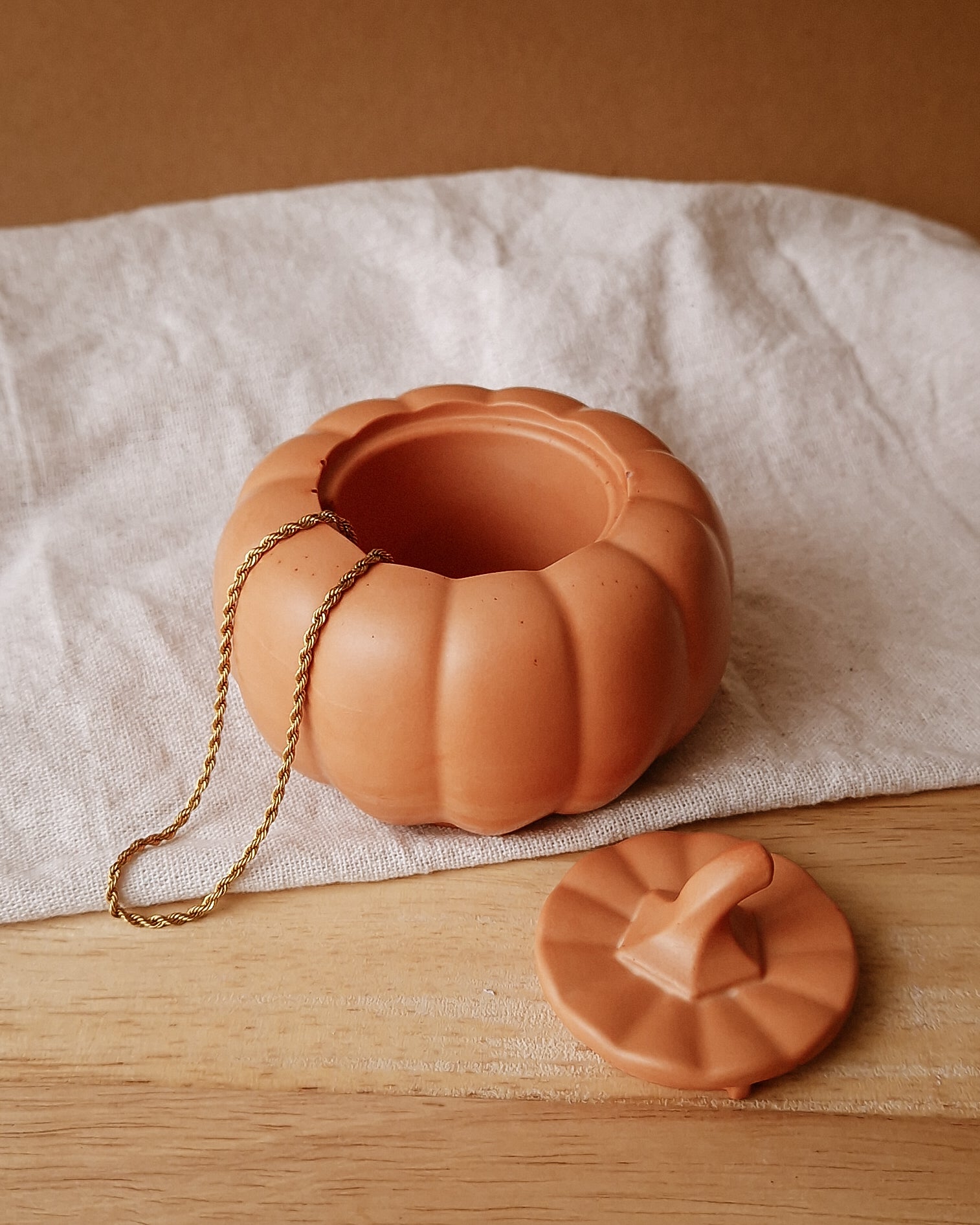 A peça que não pode faltar na decoração de outono! Inspirado no símbolo mais icónico da estação, este pote em resina ecológica em forma de abóbora é perfeito para decorar a casa ou para ser transformado numa vela acolhedora. Disponível em três cores quentes, é um charme outonal que combina tradição e modernidade.